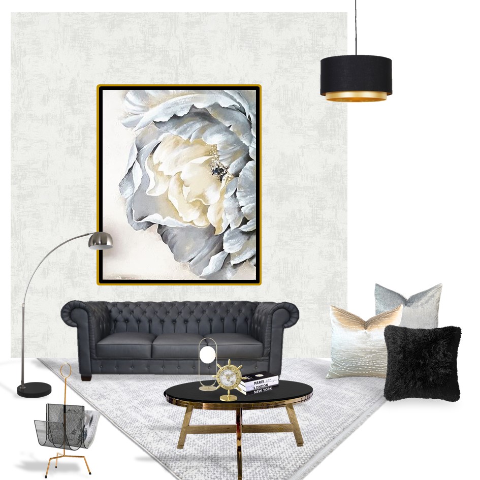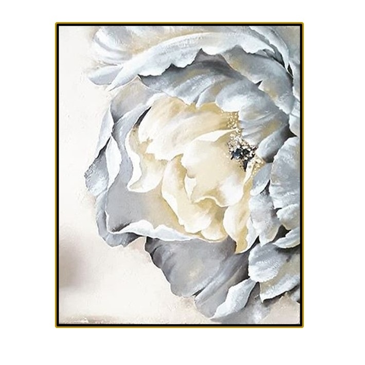 Las sombras profundas y los contrastes suaves aportan volumen y realismo, mientras que los destellos dorados en el centro evocan luz interior y sofisticación. La paleta neutra convierte esta pieza en un símbolo de elegancia atemporal, capaz de aportar calma, distinción y armonía a cualquier espacio contemporáneo.